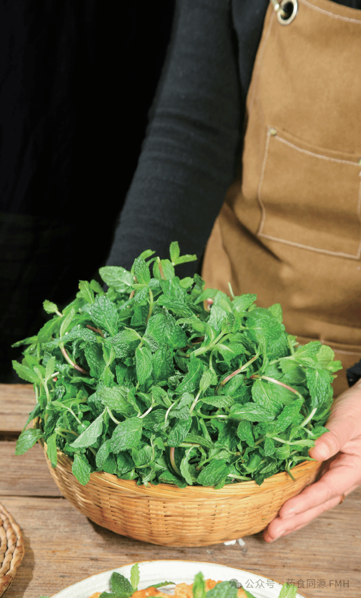 在食用方面,1000多年前的北宋时期就有食用薄荷的记录。北宋名臣李纲在诗作《献花铺唐相李德裕谪海南道此有山女献花因以名之次壁间韵》中写道:“却愁春梦归吴越,茗饮浓斟薄荷芽”,可见,用薄荷芽泡茶在当时已经流行并被大众所喜爱。元代的《饮膳正要》记载了可治“中风,言语蹇涩,精神昏愦,口面斜”的“荆芥粥”方:荆芥穗一两、薄荷叶一两、豉三合、白粟米三合,以水四升煮取三升,去滓,下米煮粥,空腹食之。到了清代,广东地区的人们常吃“薄荷豆腐”,将新鲜的豆腐切块,再用鲜薄荷叶、酱油、花生油等进行凉拌即可。