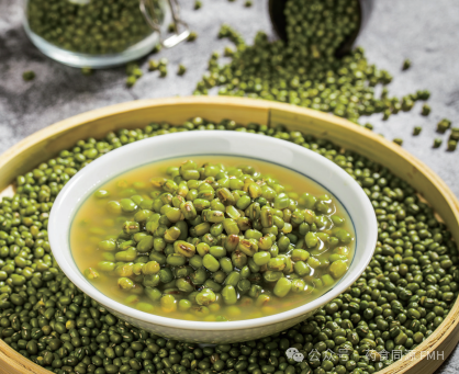 绿豆是药食同源的典型代表,很多古代医药典籍都记载了它的药用价值。唐末医师大明(自号日华子)所著的《日华子本草》记载,绿豆可“益气,除热毒风,厚肠胃;作枕明目,治头风头痛,除吐逆”。宋朝刘翰、马志等编著的《开宝本草》记载,绿豆“煮食,消肿下气,清热解毒”。明代李时珍的《本草纲目》记载,绿豆“性甘寒,无毒”,主治小儿丹肿、赤痢等症,该著作还收录了方剂“三豆膏”,将等量的绿豆、赤小豆、黑豆碾成末,用醋调匀后涂于患处,可用来治疗痘后痈肿。明代医家王肯堂撰写的《证治准绳•幼科》中记载了由绿豆、黄连、干葛、甘草制成的“绿豆饮”,其可以“解误服剂热之毒,烦躁闷乱,或作吐,或狂渴,宜先投下,次服对证药剂”,意思是绿豆饮可以缓解误服温热药物导致热毒累积而引起的症状,之后患者可以根据具体症状使用针对性药物调理。清代医家王士雄撰写的《随息居饮食谱》指出,绿豆“煮食清胆养胃,解暑止渴,润皮肤,消浮肿,利小便,已泻痢”。现代营养学表明,绿豆富含蛋白质、维生素、膳食纤维、矿物质,以及球蛋白、多糖等多种生物活性成分,具有清热解毒、消暑利水、降低胆固醇、保护肝脏等作用。比如,绿豆中含有的优质蛋白质可以为机体提供氨基酸,有助于维持肌肉和组织健康;多种维生素在细胞代谢和神经系统功能中起着重要作用,有助于维持身体正常的生理功能;膳食纤维有助于促进肠道蠕动,维护肠道健康;球蛋白和多糖可以促进胆固醇在肝脏的分解,起到降脂的作用。在食用方面,明代李时珍在《本草纲目》中记载:“绿豆,处处种之……可作豆粥、豆饭、豆酒,炒食、麨食,磨而为面,澄滤取粉,可以作饵顿糕,荡皮搓索,为食中要物。”在炎热的夏季,我们常喝具有降火消暑作用的绿豆汤,明代高濂在其养生专著《遵生八笺》中记载了绿豆汤的做法:“将绿豆淘净下锅,加水,大火一滚,取汤停冷,色碧,食之解暑。如多滚则色浊,不堪食矣。”在现实生活中,不同地方做绿豆汤的方法有所差异,绿豆汤的颜色也有差别。北方水质偏碱性,有些地方的绿豆汤是红色的;南方水质偏酸,煮出来的绿豆汤则是绿色的。