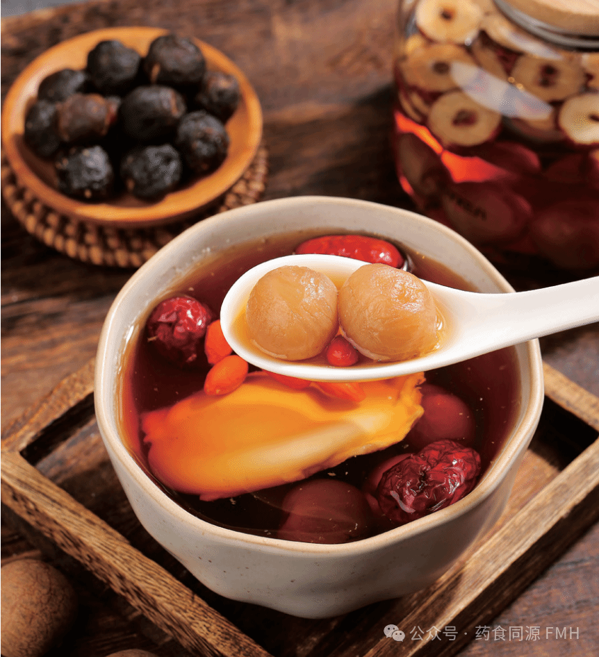 现代研究也证实了桂圆含有丰富的营养价值。根据《中国食物成分表》的数据,每100克干桂圆含有74.9克碳水化合物、5.1克蛋白质、4.4毫克铁以及少量B族维生素。桂圆所含的碳水化合物能为机体新陈代谢提供能量,铁元素能促进血红蛋白生成、缓解轻度贫血,B族维生素则有助于神经系统的健康。此外,桂圆还含有多糖类、黄酮类、皂苷类等生物活性物质。其中,多糖类物质具有增强免疫力的作用,黄酮类具有抗氧化和抗炎作用,皂苷类有助于调节血脂平衡。这些成分共同构成了桂圆作为“补品”的科学基础,因此,无论是中医还是现代营养学,都认可桂圆是一种天然的功能性食品或食补食材。