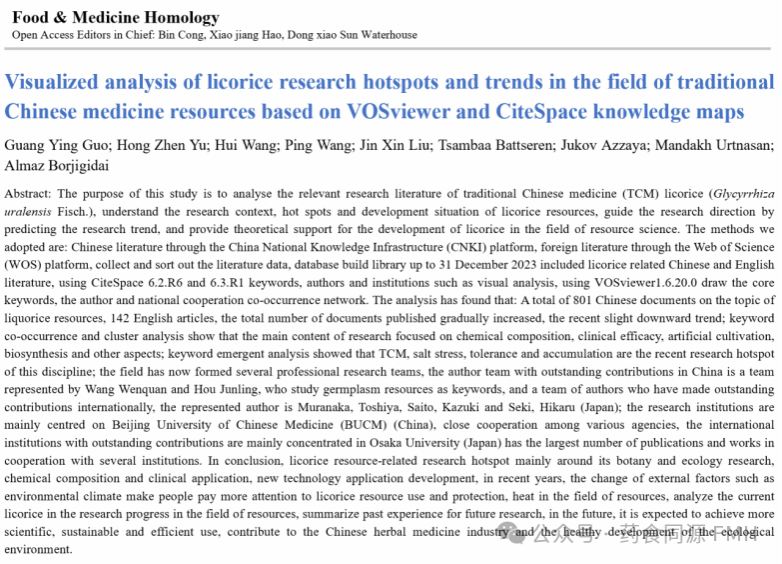 基于VOSviewer和 CiteSpace 知识图谱对甘草在中药资源领域研究热点和趋势的可视化分析