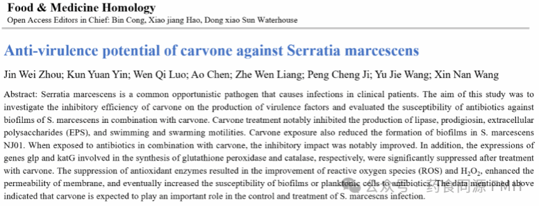 左旋香芹酮对粘质沙雷氏菌降毒增效的机制解析