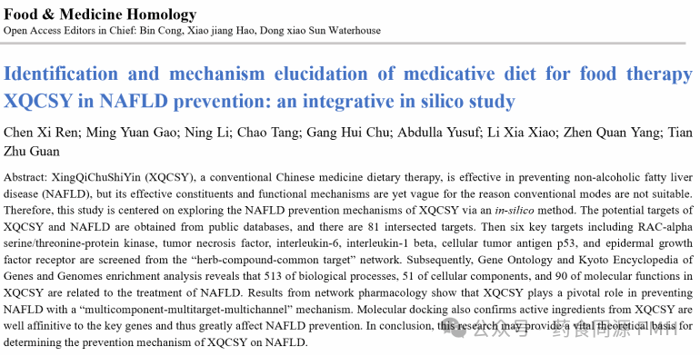 基于网络药理学和分子对接探究药食同源“行气除湿饮”预防非酒精性脂肪肝病的分子机制