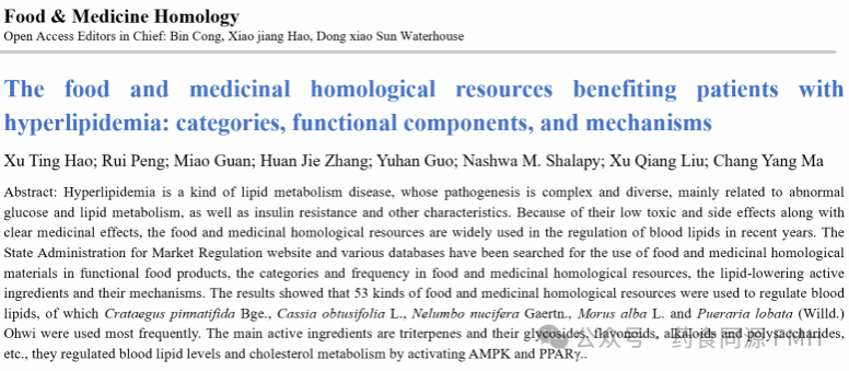 调节血脂的药食同源资源:种类、功能成分及作用机制
