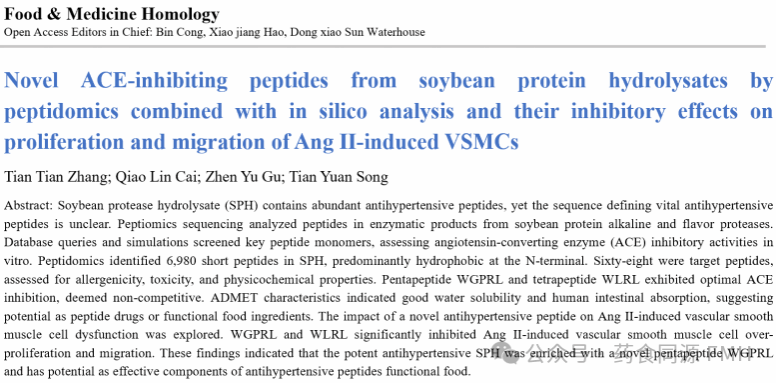 大豆蛋白源新型ACE抑制肽的虚拟筛选及抑制VSMC增殖迁移的作用