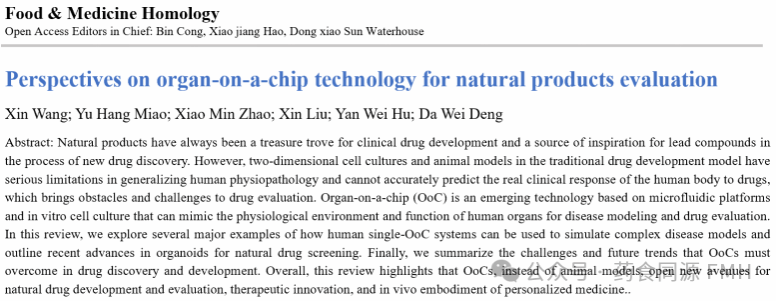 微观世界中的“器官芯片”技术:天然产物评估的全新视角