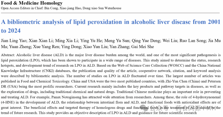 2001年至2024年酒精性肝病中脂质过氧化的文献计量学分析