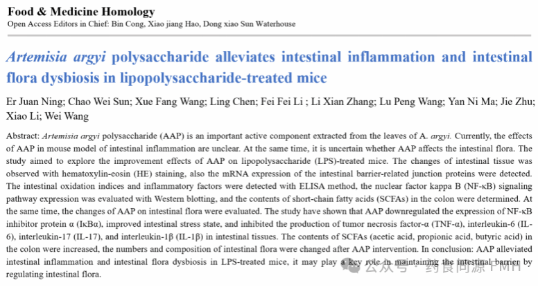 艾叶多糖改善LPS诱导的小鼠肠道炎症和肠道菌群失调