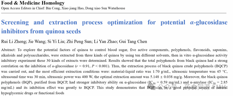 从藜麦种子中筛选潜在的α-葡萄糖苷酶抑制剂并优化提取工艺
