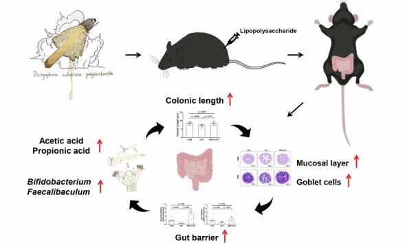 福建农林大学食品科学学院张怡教授课题组通过脂多糖(LPS)诱导的小鼠炎症模型,系统评价蒸汽爆破处理 DIPS 的抗炎效果,通过疾病表型、炎症因子水平、组织病理学分析、肠道屏障功能、菌群结构及代谢产物等多维度指标,解析其作用机制,为开发 DIPS 功能食品用于肠道炎症防护提供重要理论依据。