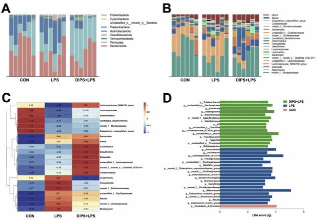 图5. DIPS干预对LPS诱导炎症小鼠肠道微生物群落的影响