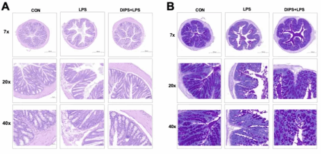 2. DIPS 改善小鼠结肠黏膜层及杯状细胞结构