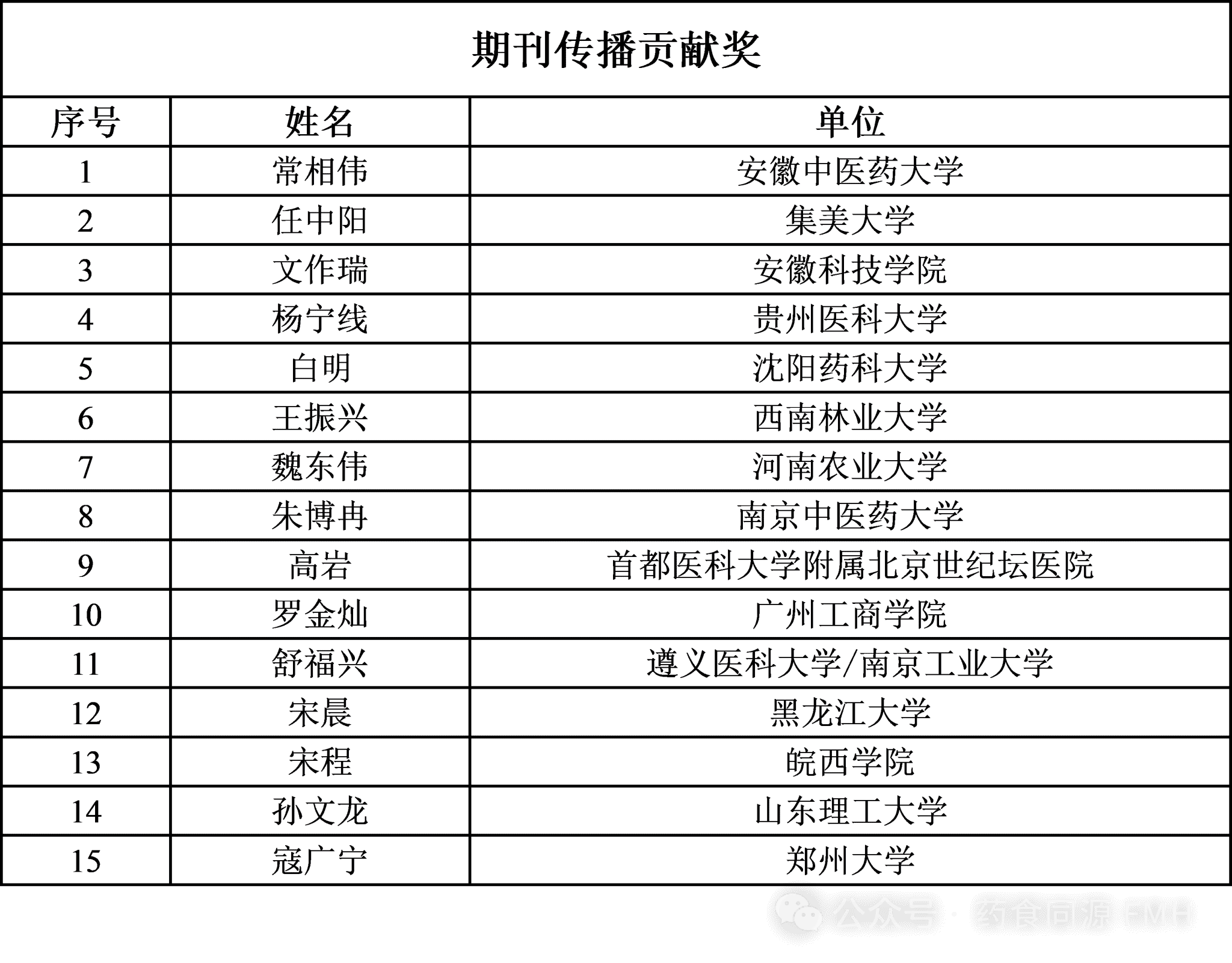 感谢各位青年编委2025年第三季度对Food & Medicine Homology(FMH)期刊发展做出的卓越贡献,期刊在2025年第三季度的快速发展,离不开每一位青年编委的陪伴与努力,FMH编辑部设立了学术传播贡献奖、优秀审稿人奖、稿件贡献奖和期刊传播贡献奖等系列奖项,表彰各位青年编委的突出贡献,希望大家继续努力,FMH期刊争取早日成为药食同源领域具有中医药文化特色的世界一流英文期刊。