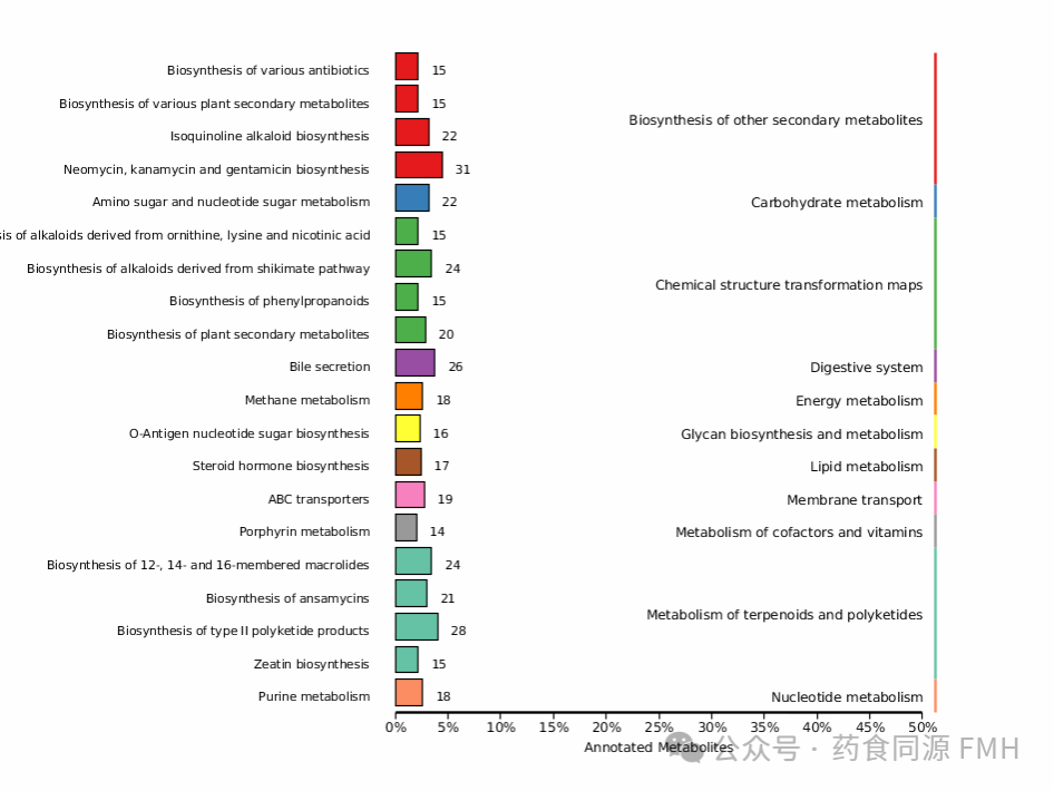 将海蚯蚓肠道(含内容物)样品送至北京百迈克生物科技有限公司进行代谢物提取、上机检测和代谢物定性定量检测。结果显示,395个代谢物注释到KEGG数据库中,有1011个代谢物注释到HMDB数据库中,253个代谢物注释到LIPID MAPS数据库中(图3-5)。KEGG数据库中最多的为Metabolism of terpenoids and polyketides,HMDB数据库中最多的为Lipids and lipid-like molecules,LIPID MAPS数据库中最多的为Glycerophospholipids [GP],这些代谢产物的发现有助于后续天然产物的开发和应用。