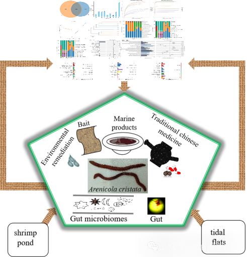 唐山师范学院马国兴博士课题组以虾池及滩涂中的海蚯蚓为目标物种,利用 PacBio 测序平台,分析不同来源海蚯蚓肠道微生物种类和数量,并分析其联系。之后,通过分析虾池中海蚯蚓的代谢组,为了解海蚯蚓肠道微生物的代谢产物种类奠定基础。