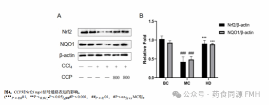 4. CCp对Nrf2/NQO1信号通路中关键蛋白表达的影响