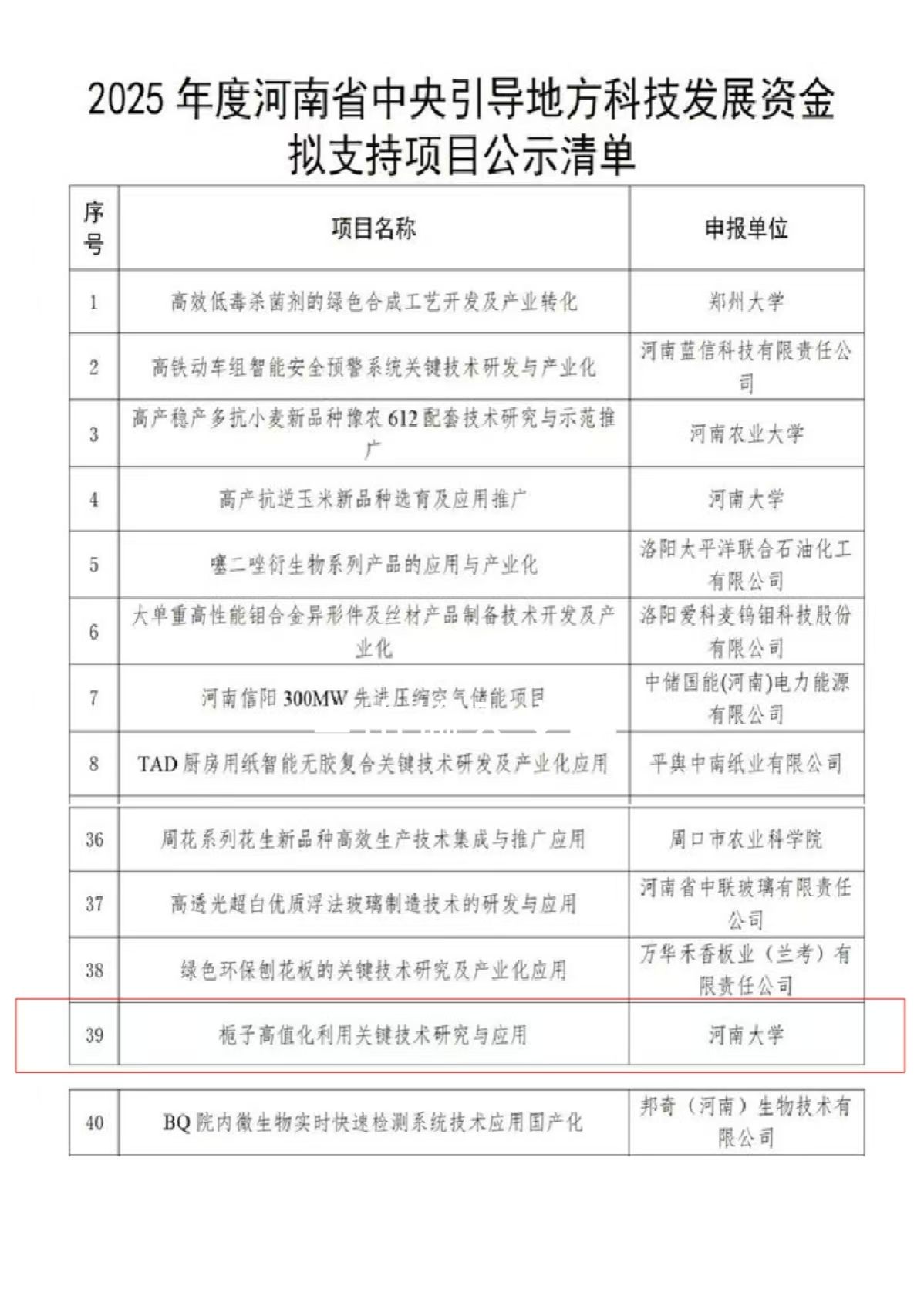 11月25日,河南省科学技术厅公示2025年度河南省中央引导地方科技发展资金拟支持项目名单,国家食用菌中心王金梅老师申报的“栀子高值化利用关键技术研究与应用”项目成功入选,获中央财政资金支持。