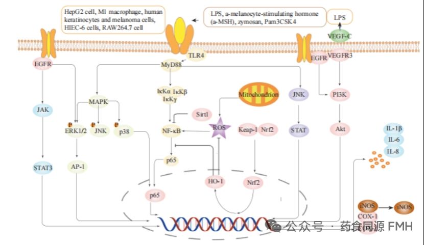 总结发现,山茱萸具有抗氧化、抗炎、抗糖尿病、抗肿瘤、神经保护等生物活性,其中抗炎、降糖作用机制呈现多途径、多靶点的特点。但山茱萸中仍有许多化合物尚未进行活性研究,这意味着山茱萸仍有潜在的药理活性有待进一步研究。