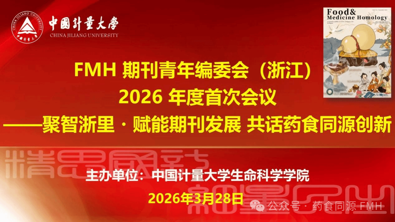 2026年3月28日,《药食同源(英文)》(Food & Medicine Homology, FMH)浙江地区青年编委2026年度首次研讨会以线上线下结合形式成功举办。本次会议以“聚智浙里·赋能期刊发展 共话药食同源创新”为核心主题,立足浙江药食同源科研底蕴与产业优势,聚焦学科融合发展与期刊高质量建设,汇聚浙江大学、浙江中医药大学、温州医科大学、中国计量大学等省内外多家高校及科研机构的40余位知名专家学者、青年编委代表云端相聚,共探区域学术生态构建路径,共商期刊国际化发展大计,为药食同源领域的科研创新与产业升级凝聚浙里力量。